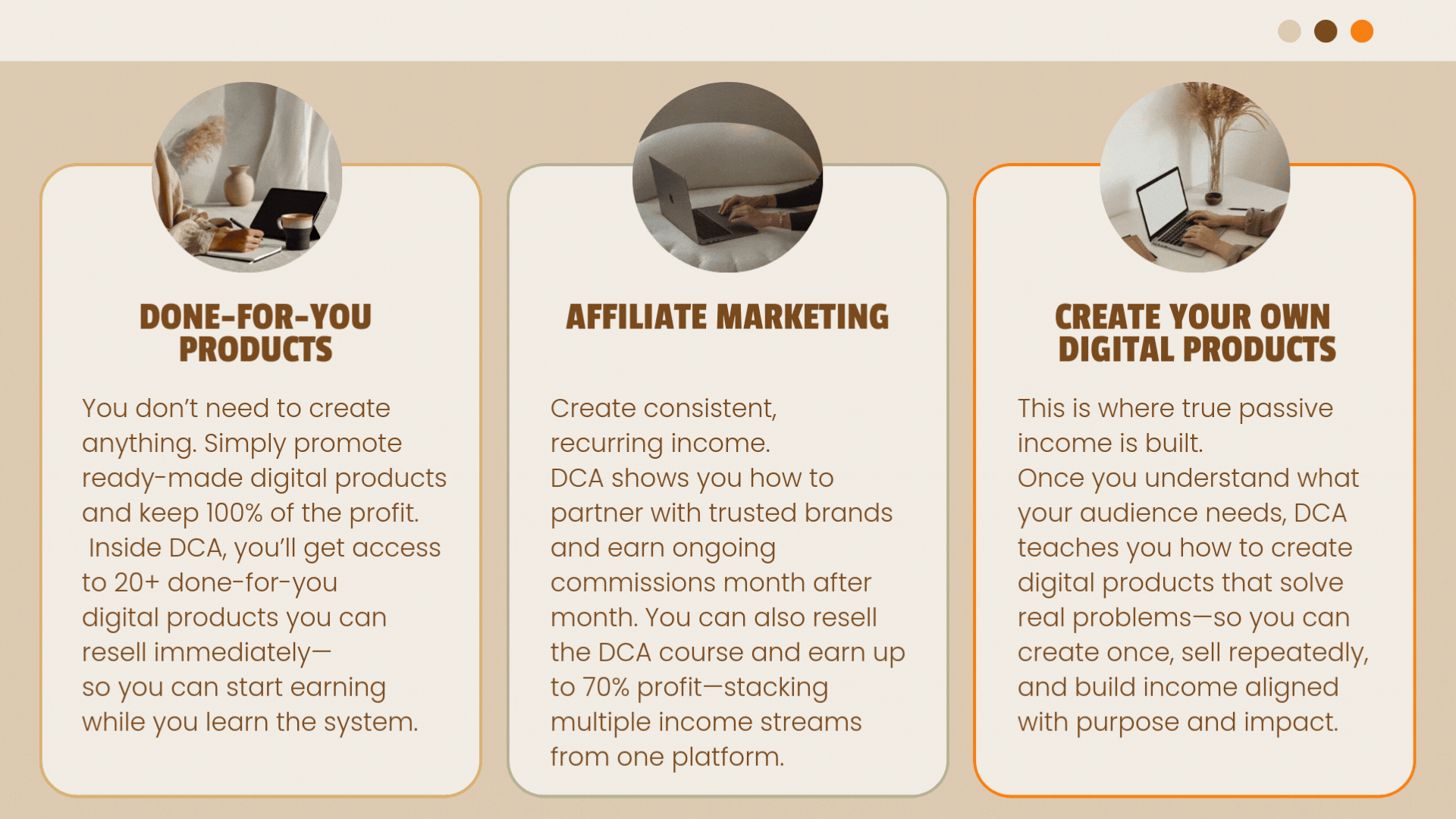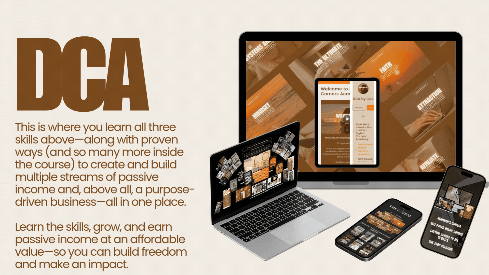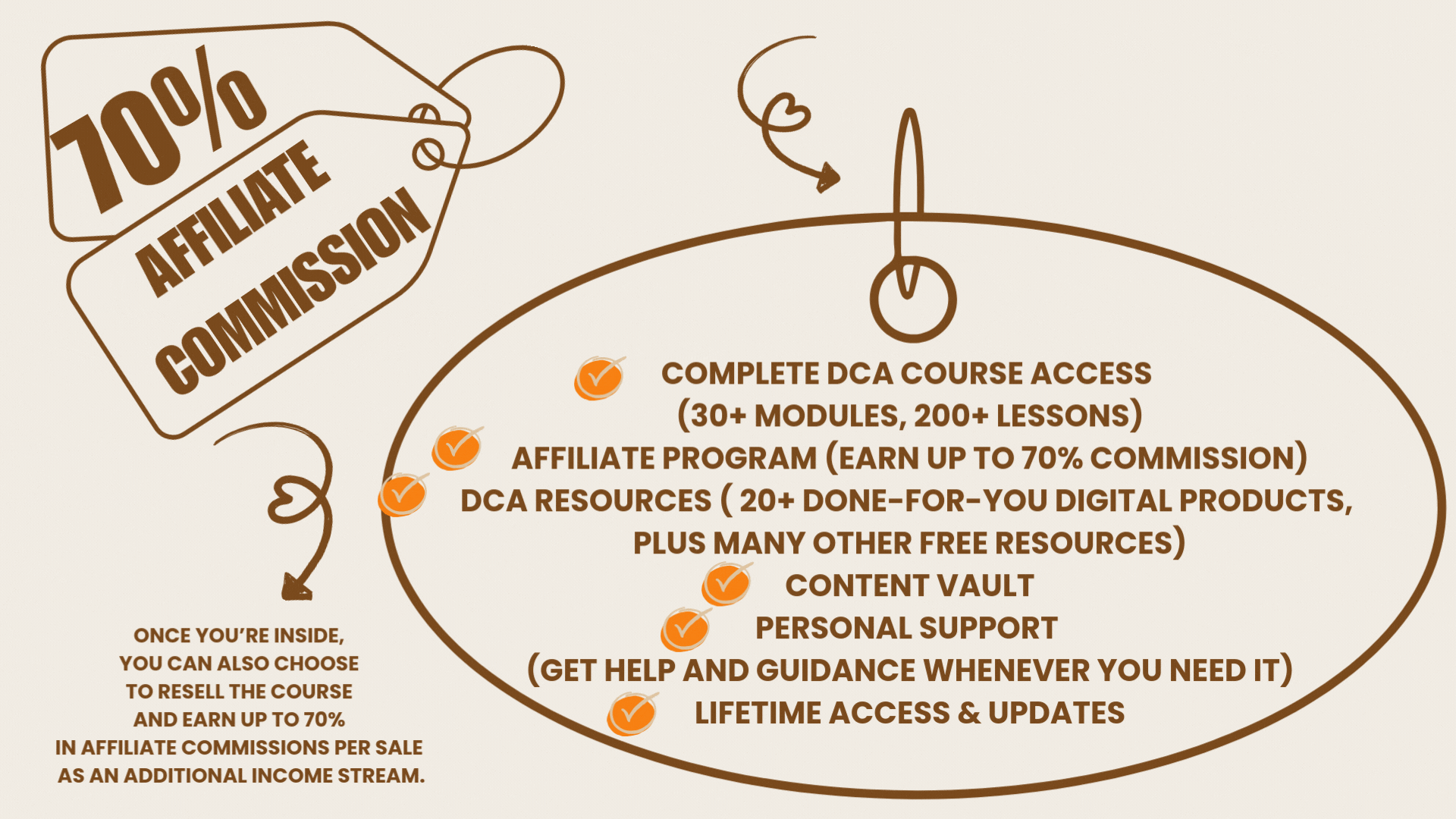 With step-by-step training, done-for-you resources, and essential tools, DCA helps you start and scale your online business with clarity. Plus, you can earn up to 70% commission by reselling the course.