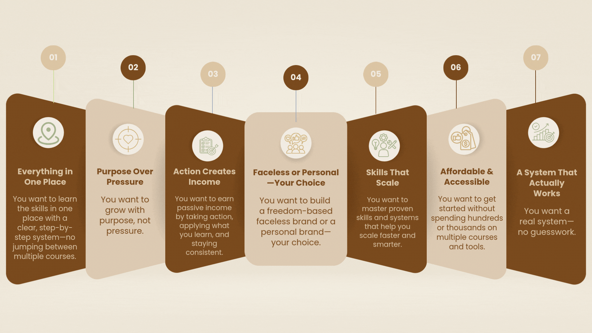 Inside, you’ll learn digital marketing fundamentals, create digital products, set up automated sales systems, build content, and develop multiple income streams—at an affordable price for everyday people.